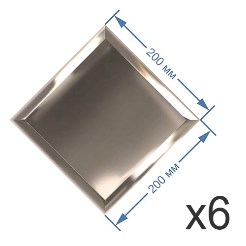 Зеркальная плитка 20x20 см (6 шт.) с фацетом 15 мм (квадрат)